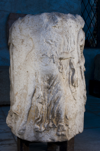 Ara cilindrica, decorata nella fascia centrale da un rilievo rappresentante quattro figure femminili danzanti, che procedono verso destra e portano tutte un lungo chitone. Davanti ad una delle quattro figure è rappresentata una pantera, che volge il capo all'indietro.