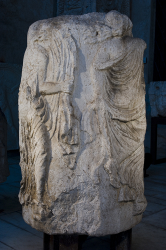 - NOTIZIE STORICO CRITICHE L'ara è da considerare un prodotto proveniente dalle officine locali, visto l'utilizzo di materiale locale, ed è databile per motivazione stilistica fra la fine del I secolo d.C. e l'inizio del II secolo d.C. Il rilievo è un tipico esempio di arte neoattica, semplificato sia per la maggiore plasticità rispetto ai modelli neoattici, sia per il maggior appiattimento dei corpi nel rilievo. L'iconografia è molto diffusa, ma in questo caso modificata dalle officine locali con l'aggiunta di elementi di novità, che sottolineano la loro originalità.