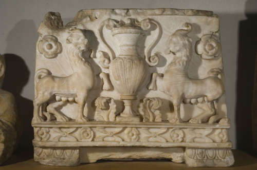 - NOTIZIE STORICO CRITICHE Nella collezione Jacopo Verità all'urna Verità 2 era considerato pertinente il coperchio 28735, in seguito separato. La tipologia degli animali fantastici si discosta dal tipo classico; feroci e pesanti, sono tipicamente etruschi (Fogolari 1957). Secondo Modonesi (1990) il monumento sarebbe pertinente ad "atelier delle rosette e palmette", le cui produzioni si sviluppano nell'ultimo quarto del II sec. a.C.