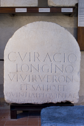 - ISCRIZIONI fronte - C(aio) Viracio / Longino / VI vir(o) Veronae / et salio et / Quintiae P(ubli) f(liae) Quintae / C(aius) Viracius Quintinus / [- - - - - -]. - Lettere posate maiuscole - Incisione - latino