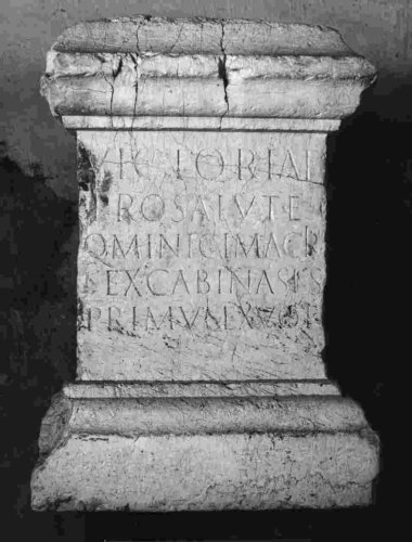 - NOTIZIE STORICO CRITICHE Sex(tus)Cabinasius Primus pone questa iscrizione alla Victoria per impetrare la salvezza di un amico o di un compagno d'armi. Il culto della Victoria evidentemente aveva riscontri non solo a livello pubblico, in quanto direttamente connesso con le vicende militari dell'impero, ma anche a livello privato. Si propone per l'ara una datazione al sec. II d.C. essenzialmente per tipologia del monumento e paleografia.
