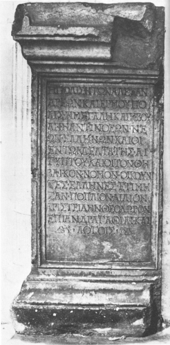 - ISCRIZIONI fronte - La città degli Alessandrini e Hermupolis la grande, e il Consiglio degli abitanti di Antinupolis, nuovi Elleni, e i Greci che vivono nel Delta dell'Egitto e nel distretto di tebe, hanno onorato Poplios Ailios Aristeides Theodoros per la sua probità e la sua eloquenza - Incisione - greco
