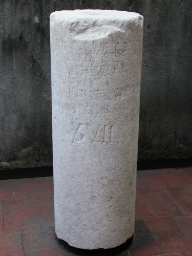 - ISCRIZIONI sul fusto - Imp(erator) Caes(ar) C(aius) Aurel(ius) Val(erius) Diocle / tianus, p(ius), f(elix), inv(ictus), Aug(ustus), et / imp(erator) Caes(ar), M(arcus) Aurel(ius) Val(erius) Maximianus, / p(ius), f(elix), inv(ictus), Aug(ustus), et / Fl(avius) Val(erius) Constantius [et Gal(erius) Val(erius) Maxi / mianus] (duo) nob(ilissimi) Caes(ares). / XVII. - Lettere posate maiuscole - Incisione - latino