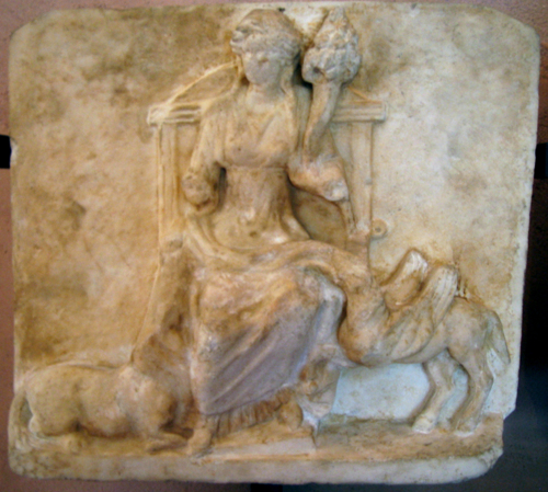 - NOTIZIE STORICO CRITICHE Ammettendo che lanimale rappresentato sia un leone, la dea è stata identificata come Cibele, alla quale questo animale è sacro. La presenza della cornucopia, tuttavia, si addice piuttosto a Tyche, anchessa sovente rappresentata seduta in trono.