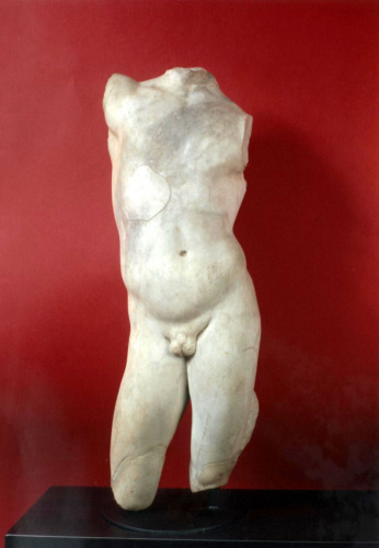 La statua, priva della testa, delle braccia e della parte inferiore delle gambe, raffigura un giovinetto gravitante sulla gamba sinistra ben piantata per terra e accompagnata dal sostegno, di cui resta solo uno spuntone. La gamba destra era invece flessa e avanzata; il braccio destro era alzato, come la spalla destra, provocando così il netto abbassamento di quella sinistra, mentre anche la testa si inclinava leggermente nella stessa direzione. Il corpo mostra così un movimento sinuoso culminante nel sollevarsi del braccio destro. La resa morbida e sfumata del nudo, che dà poco risalto alla muscolatura, e l'aspetto glabro dei genitali consentono di riconoscere nella scultura un giovinetto.