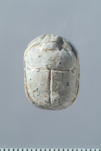 Sulla faccia superiore convessa dello scarabeo sono indicate in rilievo e incisione la testa, il protorace, le elitre e le zampe. Sulla faccia inferiore piana sono incisi dei motivi geometrici (?).