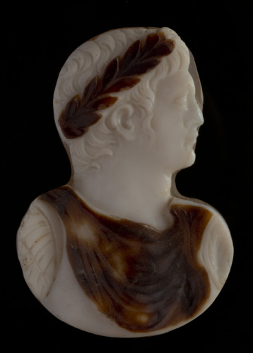 - NOTIZIE STORICO CRITICHE Il cammeo, che era conservato nello scrigno della Sala del Consiglio dei Dieci (Pellegrini 1593, n. 52), è costituito dalla "sola forma del busto...incastonato in fondo ellittico di metallo ignobile", come ricorda Valentinelli 1872, p. 64 (cfr. anche Ravagnan 1997, p. 240). La datazione del cammeo si presenta problematica: a fianco di una cronologia antica (I secolo d.C.: Ravagnan, Nardelli), è stata proposta anche un'appartenenza del pezzo alla produzione post-antica (Platz-Horster 2002, p. 59).