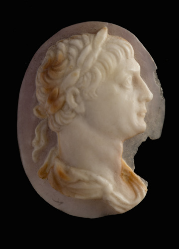 - NOTIZIE STORICO CRITICHE Il cammeo è presente nell'Inventario Verdara, n. 19 (Nardelli 1999, p. 83). Stile e materiale fissano la cronologia al XVI secolo d.C., anche se l'immagine dell'imperatore è chiaramente ispirata all'iconografia antica, in particolare monetale.