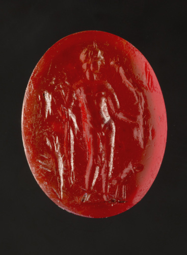 corniola rossa, ovale, convesso; intaglio
