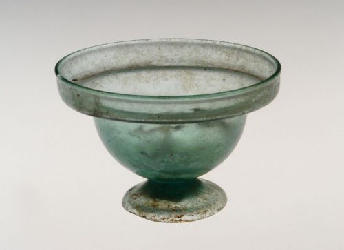 labbro verticale ripiegato all'esterno e verso l'alto con orlo arrotondato; corpo emisferico; piede campaniforme appiattito con bordo tagliato.