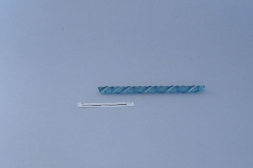verghetta ritorta in vetro fuso incolore con filamenti inclusi bianchi e azzurri