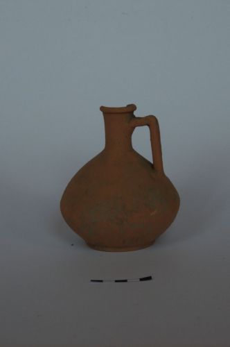 ventre globulare schiacciato, collo leggermente espanso e orlo ingrossato; ansa con nervatura centrale e bassissimo piede a disco