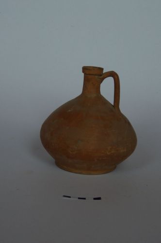 ventre globulare schiacciato, collo diritto e orlo a fascia; ansa a nastro e basso piede a disco