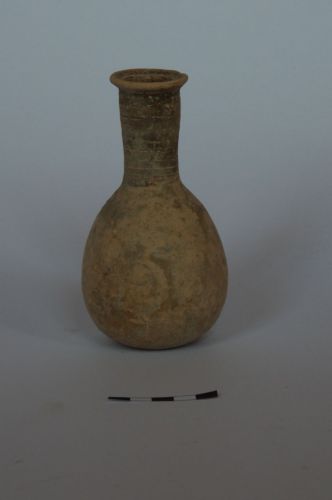corpo piriforme, fondo piano; lungo collo diritto con restringimento alla base e orlo espanso a margine indistinto