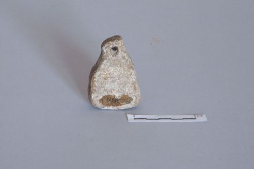 peso a sacchetto, di forma piuttosto irregolare, con foro passante ricavato un in anello appena accennato sulla sommità