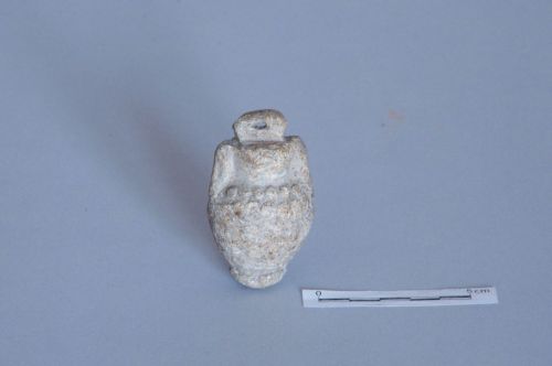 peso ad anforetta, con foro passante ricavato un in anello posto sulla sommità; la spalla dell'anforetta è decorata da un motivo a puntini rilevati