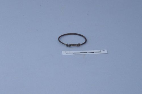 - NOTIZIE STORICO CRITICHE si tratta genericamente di un anello utilizzato per raggruppare e/o sospendere piccoli oggetti, che potevano essere piccoli strumenti per la cura personale (pinzette, ligule ecc.), ma anche amuleti e piccoli oggetti decorativi. La datazione a età romana deriva dal contesto, nel quale sono in genere presenti pochissimi materiali di età longobarda e più in genere altomedievale, ma anelli simili a questo - soprattutto in argento - sono piuttosto frequenti nelle sepolture di VI-VII secolo. Per l'età romana sono ben documentati gli anelli portastrigili, databili per lo più in etù augustea, hanno di solito un diametro maggiore, che si aggira tra i 7 e i 10 cm. Gli esemplari riconosciuti come tali hanno di solito le terminazioni decorate (cfr. ad esempio Mercando - Zanda 1998, tav. CXVIII, n. 391 e Marchegiani M., Oggetti d'uso e di ornamento personale in età romana, in Onde nulla si perda. La collezione archeologica di Cesare Di Negro-Carpani, a cura di A. Crosetto e M. Venturino, Alessandria, 2007, n. 514).