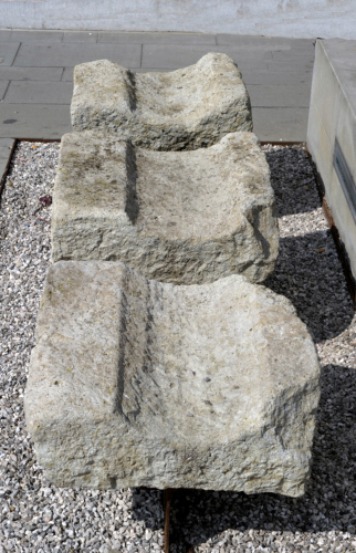 Canale di scolo costituito da tre frammenti non ricomponibili, tutti caratterizzati da spallette laterali ricavate dallo stesso blocco lapideo, con cavità concava.
