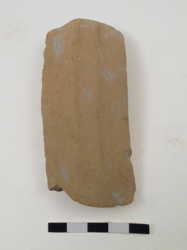 Frammento di unansa a bastoncello sezione ellittica, con una insellatura esterna ben marcata. E probabilmente pertinente ad unanfora globulare altomedievale. Limpasto presenta abbondanti inclusi bianchi.