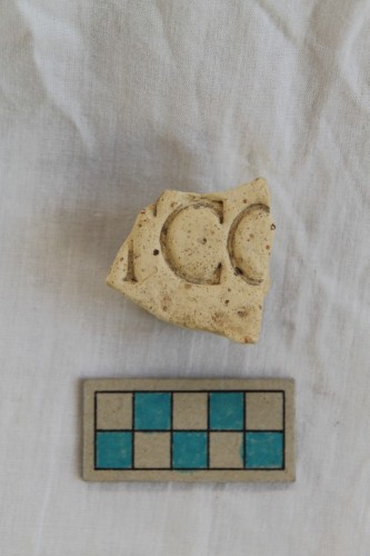 Frammento di tegola con alette rialzate, che reca impresso nella superficie superiore un bollo T. CO(ELI), su una riga alta cm 2 e senza cartiglio, punzonato a fresco.