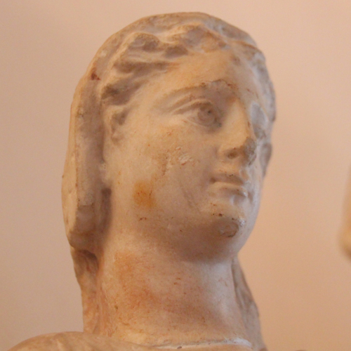 La statuetta, in parte restaurata, è stata ricostruita assemblando due frammenti antichi e la testa, di probabile fattura moderna. Il volto è costituito da un morbido ovale, caratterizzato da un'ampia fronte, che lascia spazio a soppracciglia sottili, seguite da grandi occhi, le cui iridi e pupille sono segnate da un solco sottile. Il naso è lungo e diritto, mentre la bocca, dalle piccole labbra carnose è piegata in un delicato sorriso. Ritrae una figura femminile stante sulla gamba sinistra, che è stesa a reggere il peso dell'intera scultura, mentre la destra è lievemente flessa e portata in avanti. Il braccio destro, probabilmente di restauro, è piegato in vita a trattenere la veste, mentre il sinistro è steso lungo il corpo da appoggiare la mano sulla relativa anca. Indossa un chitone leggero che giunge sino ai piedi fino a coprirli interamente, coperto da un himation pesante che le si avvolge attorno al corpo. Il tipo riprodotto richiama la Venere Marina, il cui prototipo, di ambito culturale attico, risale al II secolo a.C. sebbene se ne differenzi per la scelta di rendere maggiormente statica e frontale l'intera figura.