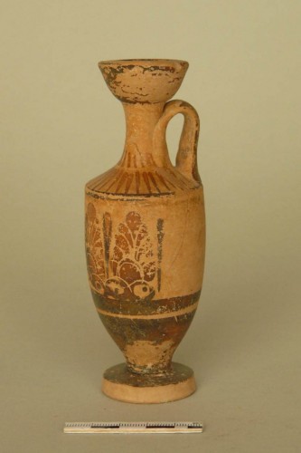 - NOTIZIE STORICO CRITICHE la piccola lekythos si inserisce nell'ambito di una produzione vastissima che doveva avere un prezzo tanto contenuto da permettere l'uso, in uno stesso corredo, anche di più esemplari; una lekythos uguale, se pure di dimensioni minori, è, sempre al Museo Provonciale di Torcello la n. 2103, alla quale si rimanda per un elenco dei molti confronti possibili (Favaretto 1982, p. 48, n. 24)