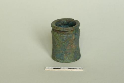 - NOTIZIE STORICO CRITICHE si tratta di recipienti piuttosto diffusi nei centri etruschi dell'Italia centrale e dell'Etruria padana, interpretati variamente come vasi potori, attingitoi o recipienti per misurare. La diffusione della forma copre un arco cronologico piuttosto ampio, dal V al III secolo a.C., durante il quale lo sviluppo morfologico porta all'accentuazione del profilo a rocchetto e allo sviluppo del labbro a fascia. In Tombolani 1981 il kyathos è identificato come un calamaio di età romana