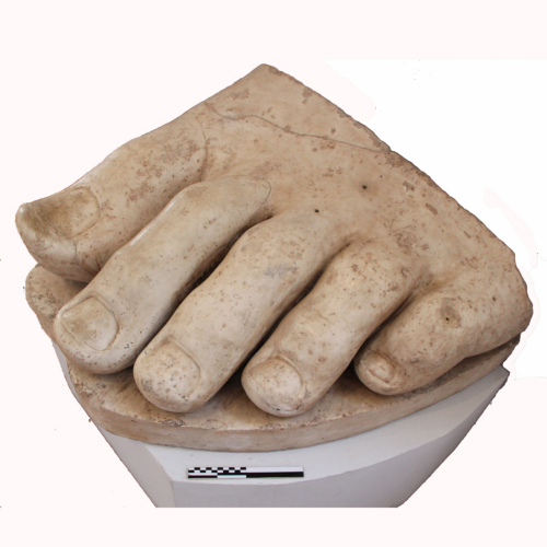 Dell'intera scultura, che doveva avere dimensioni davvero colossali, si conserva solo il piede sinistro e parte del sandalo, che funge da base d'appoggio della scultura. I finimenti della calzatura dovevano essere stati realizzati in un diverso materiale: pur non essendo più presenti, se ne conserva traccia nei fori per il fissaggio dei perni che li tenevano legati al piede.