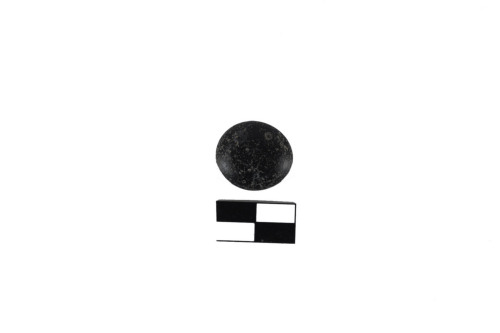 Pedina da gioco in pasta vitrea blu di forma discoidale allungata e fortemente appiattita, irregolarmente piana alla base e un po rigonfia superiormente.