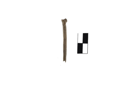 Spillone (?) a sezione subrettangolare con capocchia approssimativamente circolare, cavo allinterno.