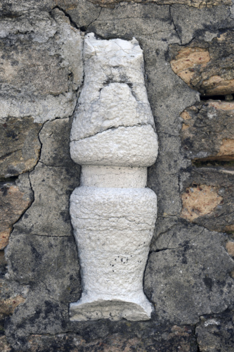 Colonnetta modanata, stretta al centro da una fascetta liscia; le parti del fusto presentano un profilo curvilineo e sono fortemente rastremate verso le estremità.
