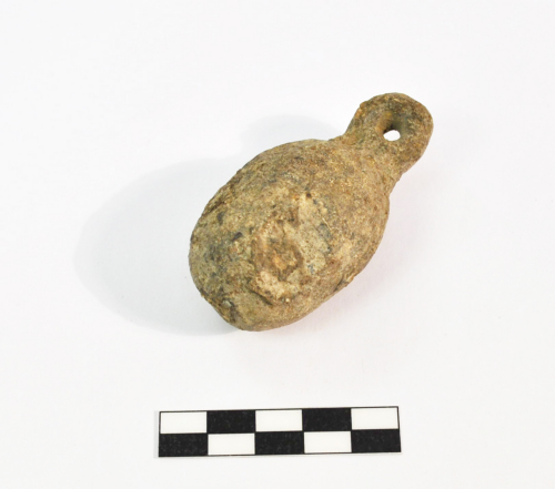 Peso da bilancia e da stadera di forma ovoidale (forma a sacco) con anello di sospensione pseudo ovale e foro centrale.