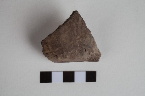 frammento di fondo con base di appoggio piana; impasto grossolano, superfici esterne e interne rozzamente lisciate e di colore grigio
