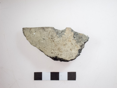 frammento di orlo esoverso con labbro arrotondato presumibilmente pertinente ad un'olla o a un vaso biconico; impasto grossolano, superfici lisciate di colore beige