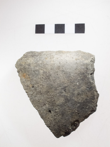 frammento di parete con carena arrotondata pertinente ad un vaso biconico; la spalla è decorata con leggere solcature parallele; impasto grossolano, superfici lisciate di colore grigio-beige