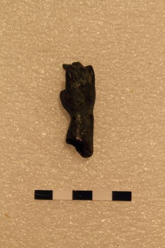 Braccio e mano destri di donna. Il braccio è cavo, funzionale a un innesto. Le dita della mano sono lunghe, affusolate, piegate verso il basso. Unghie appena accennate.