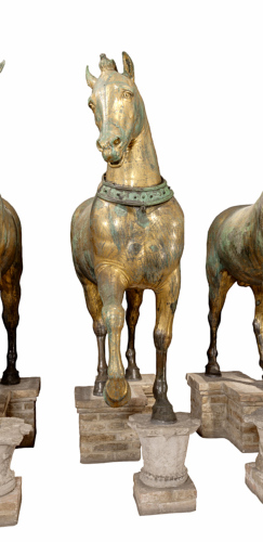 - NOTIZIE STORICO CRITICHE I cavalli furono presi a seguito della conquista di Bisanzio del 1204, durante la IV Crociata e inviati a Venezia dal doge Enrico Dandolo. Furono poi esposti sulla facciata della Basilica.