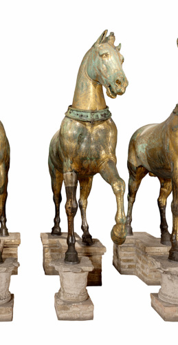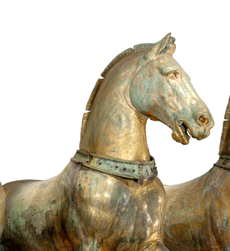 - NOTIZIE STORICO CRITICHE I cavalli furono presi a seguito della conquista di Bisanzio del 1204, durante la IV Crociata e inviati a Venezia dal doge Enrico Dandolo. Furono poi esposti sulla facciata della Basilica.