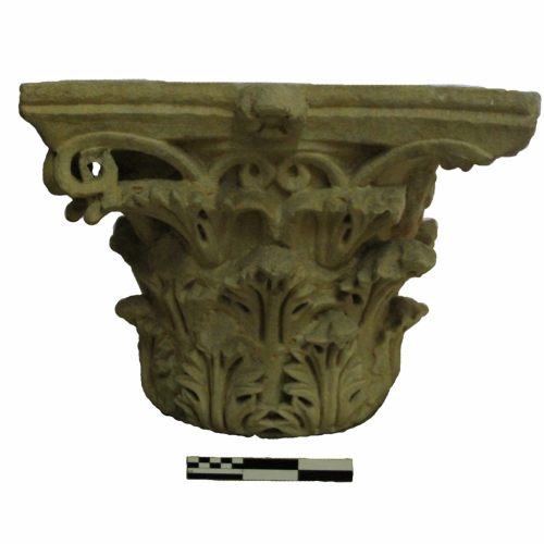 Il capitello corinzio, è stato realizzato mediante il sapiente uso del trapano lasciato anche a vista, per donare ombra e vivacità all'opera. L'acanto si dispone su tre registri, sovrastati da volute. In alto si indivuano delle rosette dai petali carnosi.