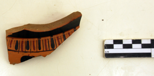 - NOTIZIE STORICO CRITICHE Il frammento di Hydria è stato rinvenuto in superficie nei primi decenni del 1900, nell'area vicino alla chiesa di S. Basilio; appartiene a un corredo tombale disperso.