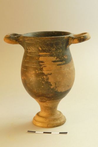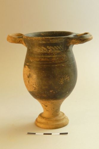 - NOTIZIE STORICO CRITICHE lo skyphos si inserisce probabilmente nella cosiddetta Late Canosan, una produzione caratteristica forse di un unica fabbrica o di un unico gruppo; gli scavi della necropoli di Martvilo a Vis hanno restituito una grandissima quantità di ceramica di Gnathia e molta proprio di questa produzione