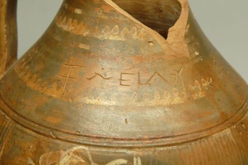 - ISCRIZIONI sulla spalla - ASSKLA POY IAELAY - capitali - a graffito - greco