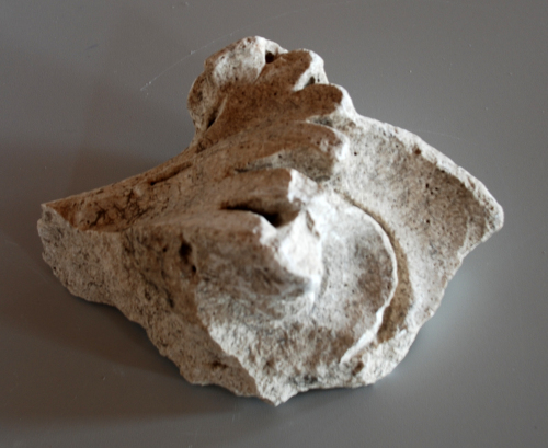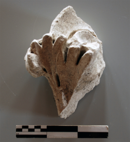 Foglia d'acanto di capitello, con linee incise anche sul margine.