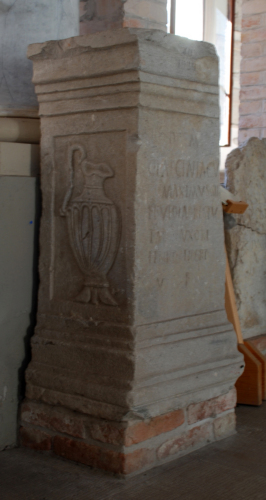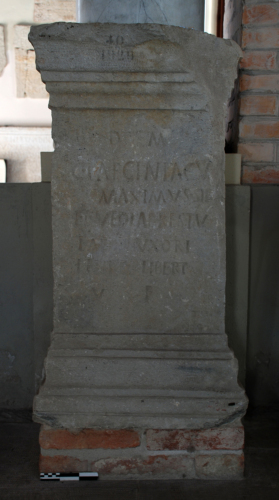 Ara parallelepipeda con iscrizione sepolcrale di Caius Laeciniacus Maximus.