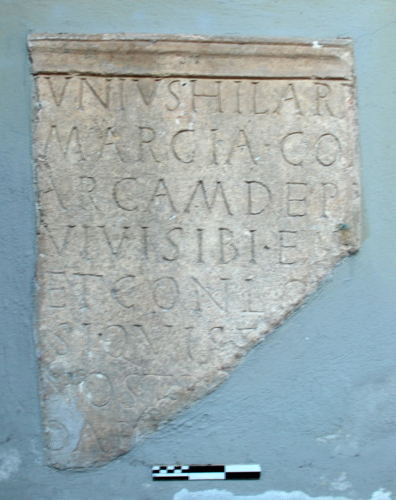 Fronte di sarcofago con iscrizione sepolcrale.