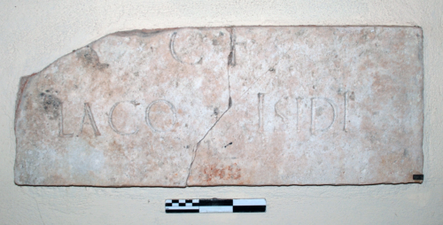 - ISCRIZIONI sulla lastra - C(ai) f(ilius) / Laco, Isidi - lettere capitali - a incisione - latino