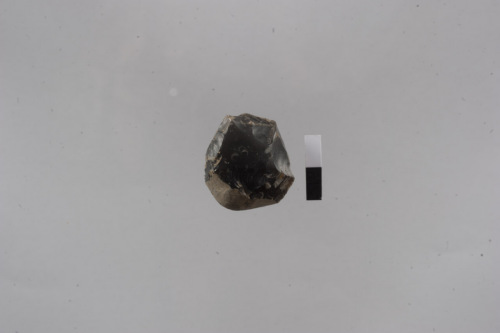 nucleo ovale su ciottolo con cortice; selce di colore nero
