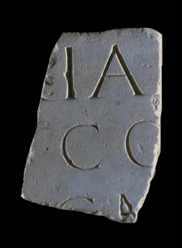 - ISCRIZIONI sulla superficie del frammento - ---] I[---] A / C [---] O - lettere capitali - a incisione - latino
