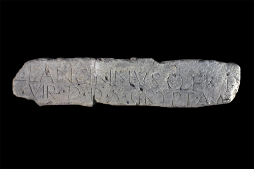 - ISCRIZIONI all'interno dello specchio epigrafico - Q(uintus) Lancidinus Q(uinti) f(ilius) d[uo- / vir d(e) d(ecurionum) s(ententia) cryptam - lettere capitali - a incisione - latino