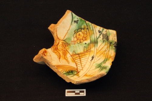 ceramica ingobbiata graffita e dipinta sotto vetrina (scodella/ forma ricostruibile ceramica graffita rinascimentale )